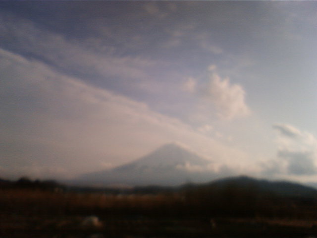 富士吉田市から17時45分くらいに撮影しました。今日は雲がバックにかかっていたので、夕暮れの趣がありました。