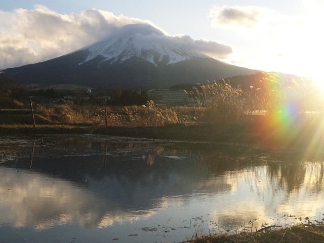今日の富士吉田市の気温は8℃あり、それなりに暖かな夕暮れであり、年の暮れになりました。
