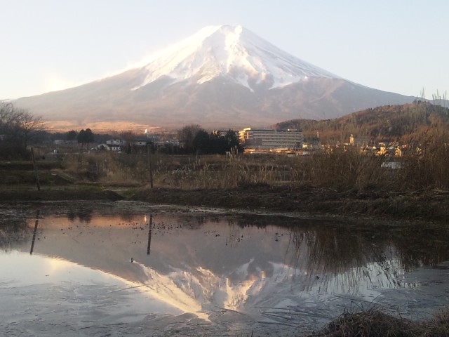 今朝の忍野村の気温は0℃で、あまり寒く感じられません。というよりも、暖かく感じてしまいました。