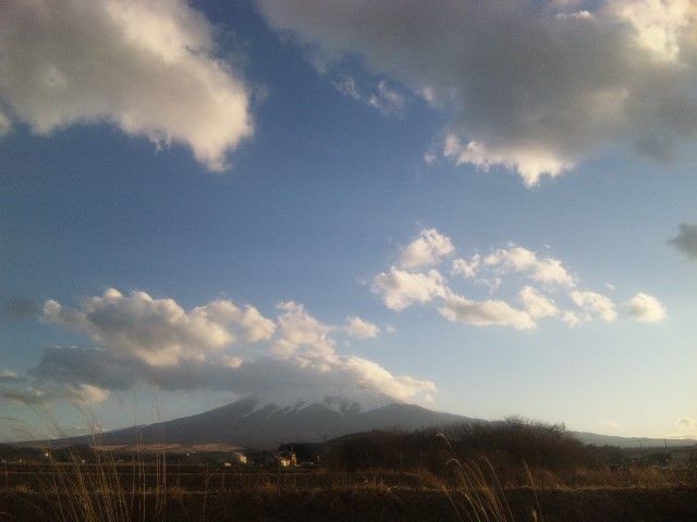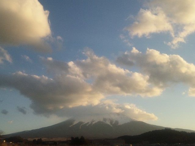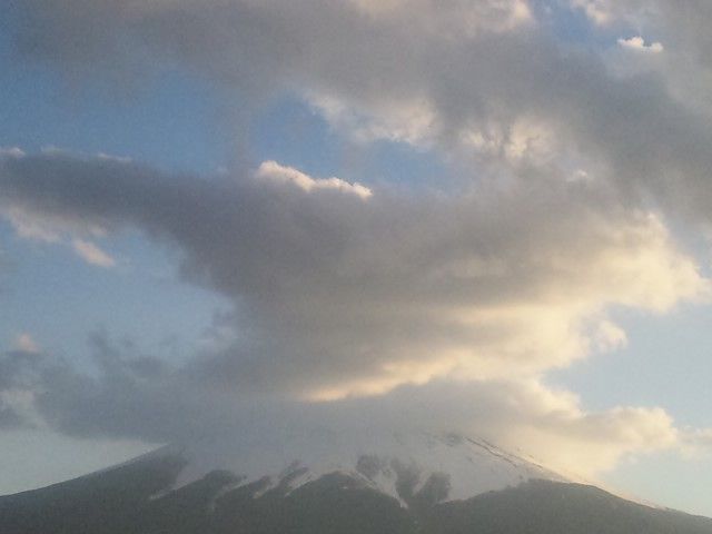 そして夕方近くになると、富士山山頂付近には巨大化した『笠雲』が出てきました。