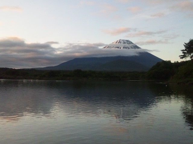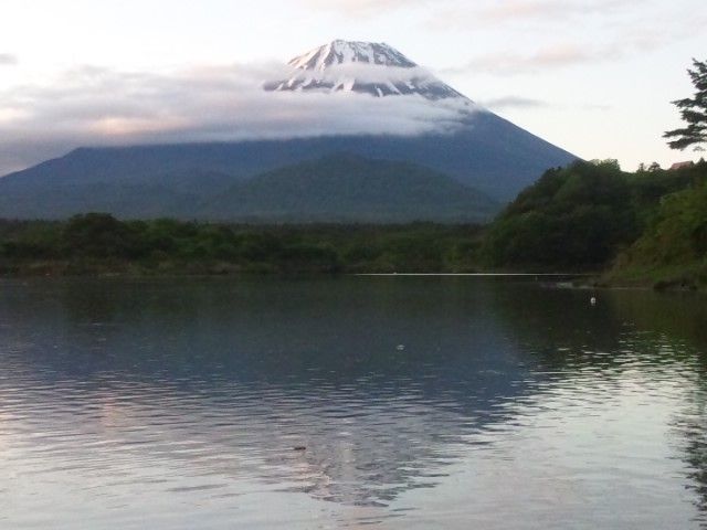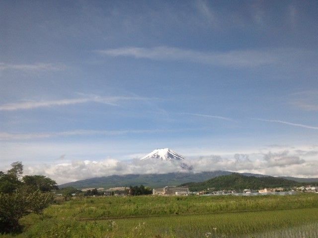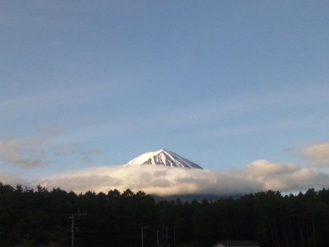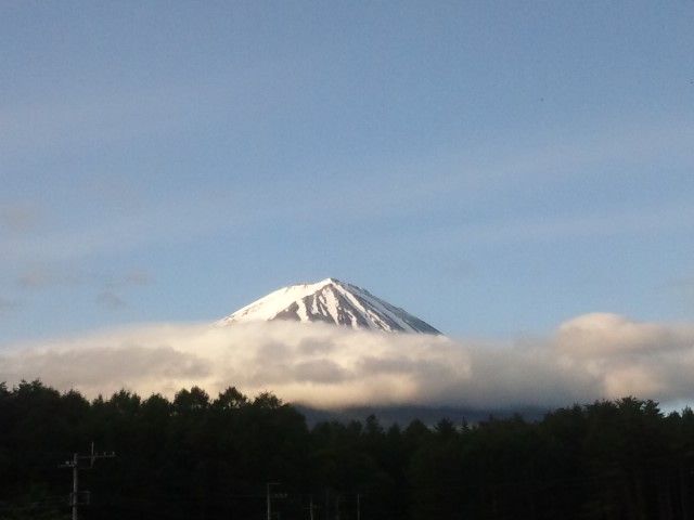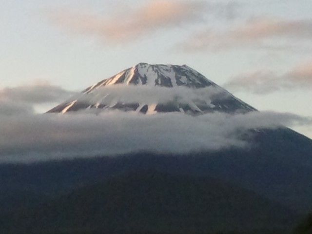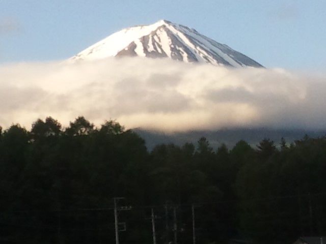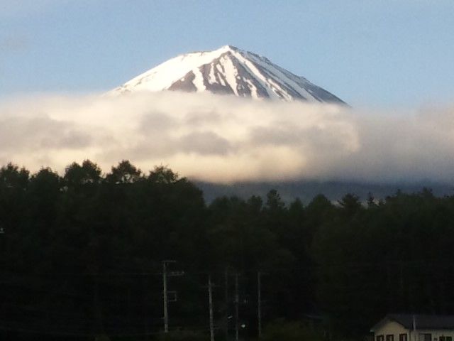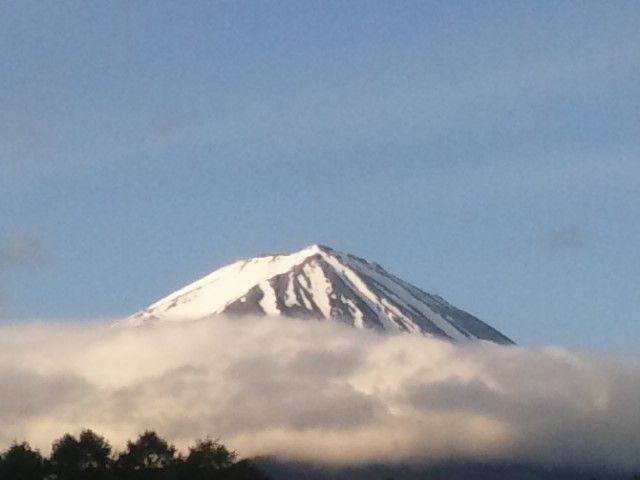しかし7時30分くらいになると、富士山は五合目辺りに帯状の雲がありながらも、山頂ははっきり見えてきました。