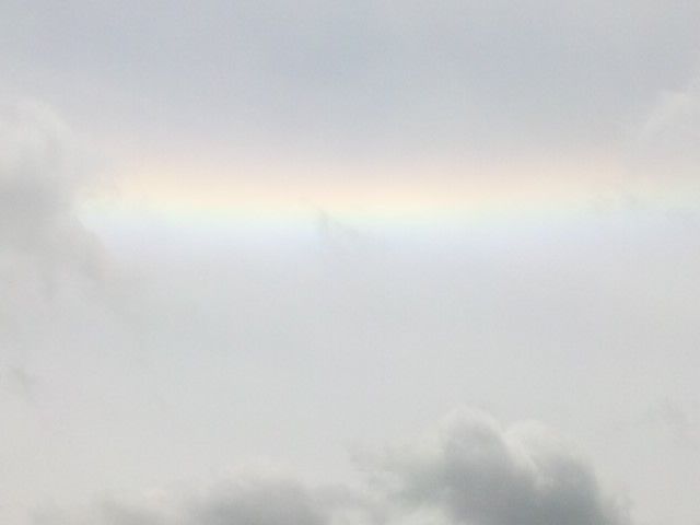 今日みたいな少し気味悪い時に、鮮やかな虹のような雲を見ると、さらに気味が悪くなってしまいました。
