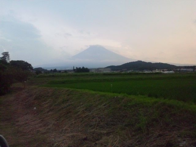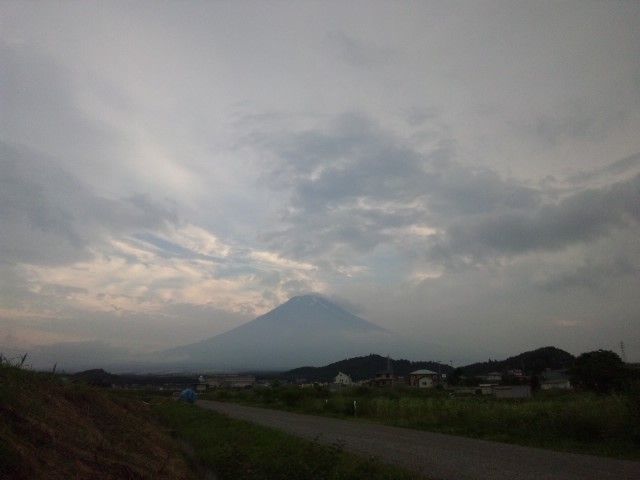 しかし富士吉田市は夕立もなく、また夕暮れ近くになって、少し青空が見えてきていました。それに合わせるように、富士山も徐々に雲間から姿を現してきました。