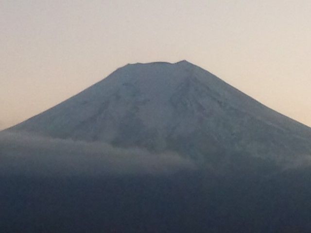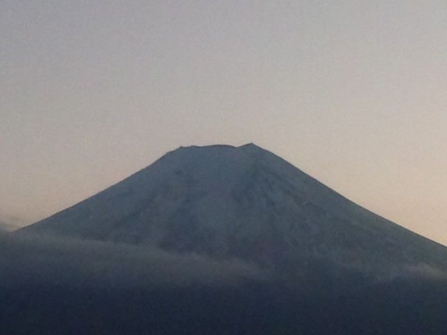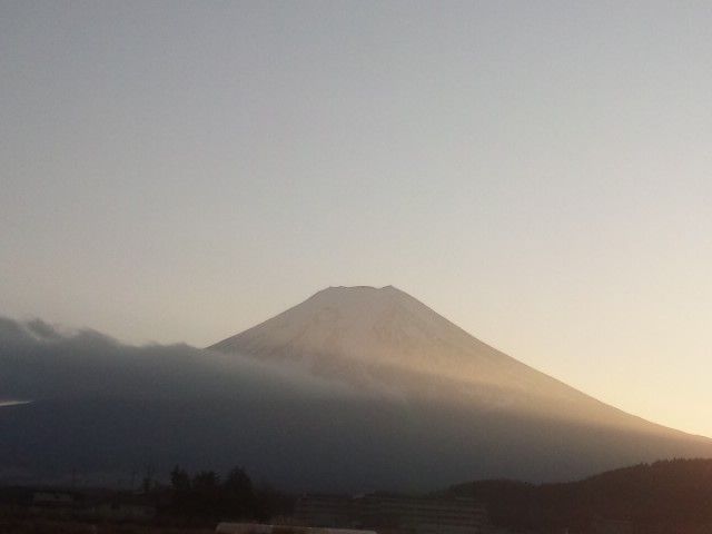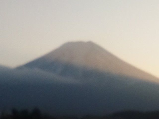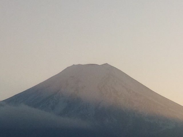 16時25分くらいになって、富士山の背景の空には薄いオレンジ色の夕焼けが出てきました。