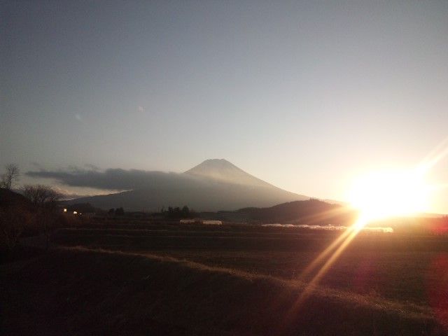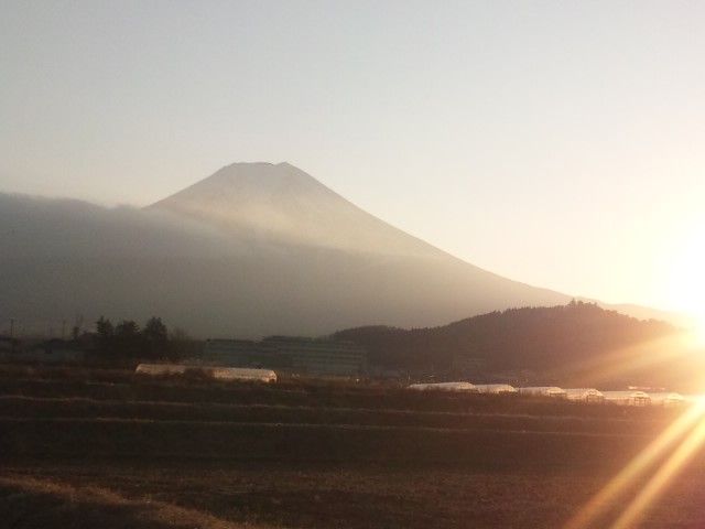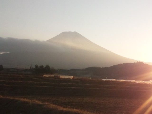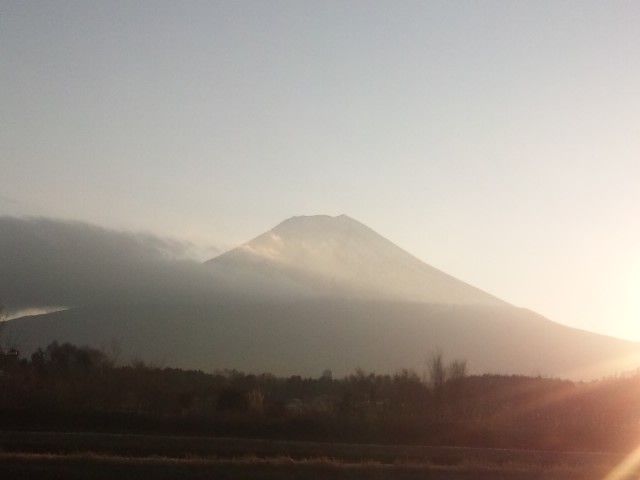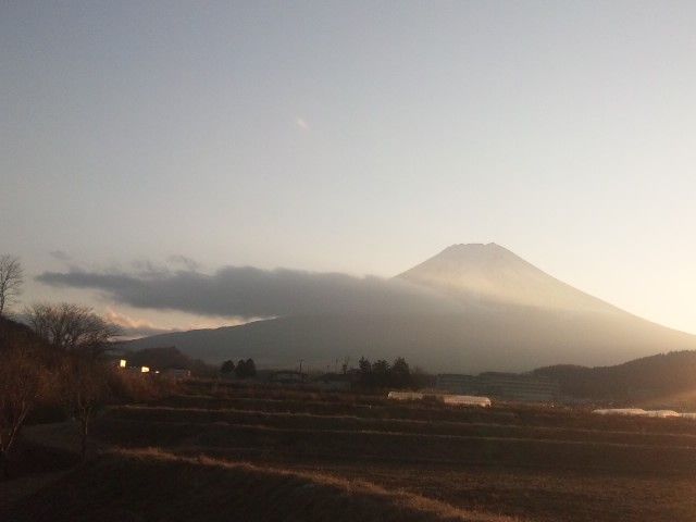 富士山にはかなり西に傾いている夕日からの光が横から照らしてきていて、眩しくなっていました。