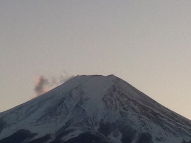 今日の富士山は北西の季節風が強く吹いていて、富士山にはずっと吹き出しに伴う雪煙が舞い上がっていました。