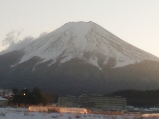 今日の富士山は典型的な冬型の気圧配置特有の、雲ひとつない富士山とは違って、富士山左側には吹き出しに伴う雪煙や雲が出ていました。