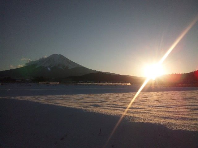 ちょうど夕日が富士山右側の稜線に沈んでいくところでした。