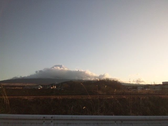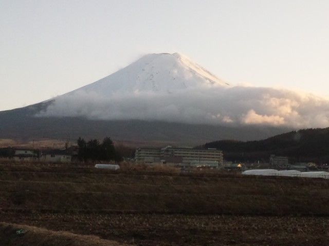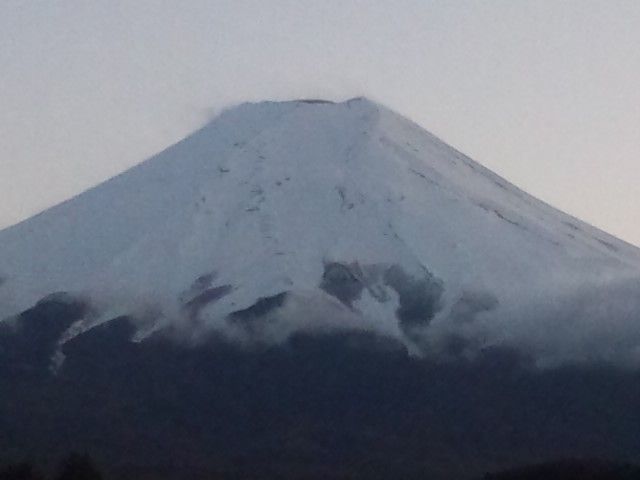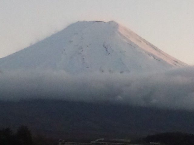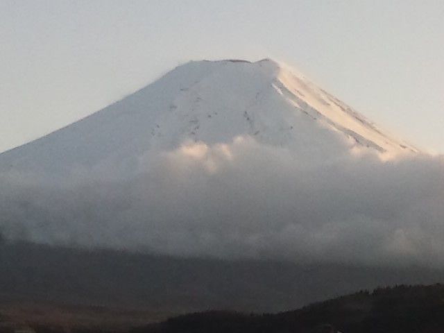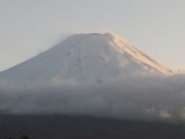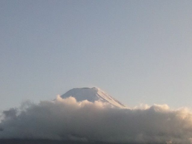 富士山には中腹に雲がかかっていますが、山頂付近から見えてきました。