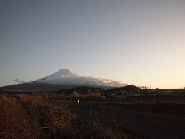 富士山には夕日の残光が残っていて、富士山左側の稜線辺りにはピンク色が出ていました。