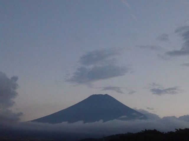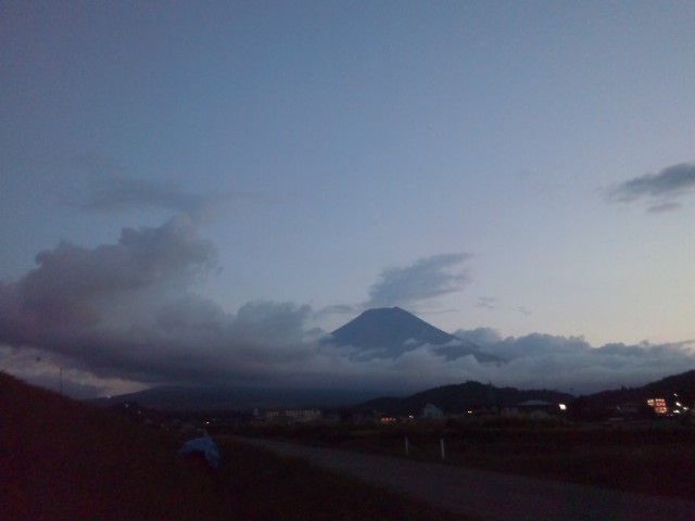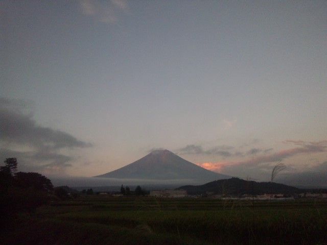 夕日はすでに沈んでしまっていて、富士山の背景の空には、薄いオレンジ色の夕焼けが出てきていました。