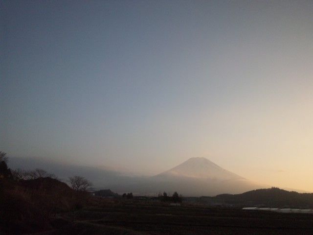 今日の富士山夕暮れ2・28富士吉田市『下吉田地区』(霞がかった富士山)《9560》