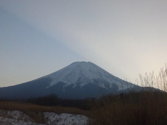 夕日は既に沈んでしまっていますが、夕日の残光が右下から富士山に当たってきていました。