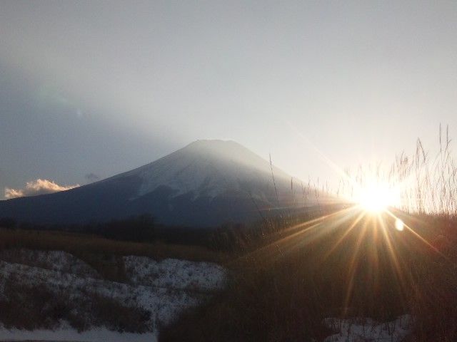夕日はちょうど西の山(富士山稜線右側)に沈むところでした。