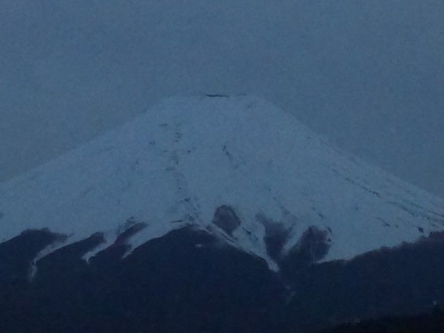 今日は遅くまで富士山の背景の空には、薄いオレンジ色の夕焼けが出たままでした。