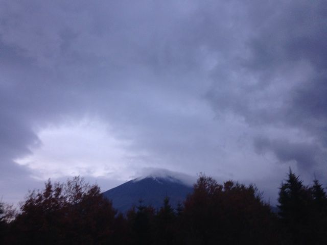 富士山の背景の空には、薄い紫色のような朝焼けが出てきました。
