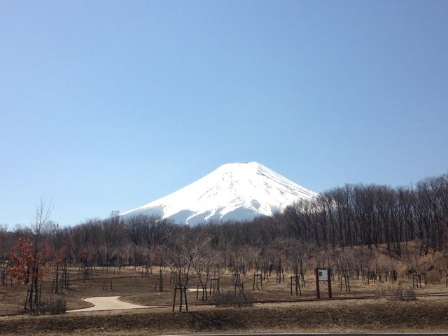 富士山は初夏のような暖かさの中で真っ白になって見えていました。