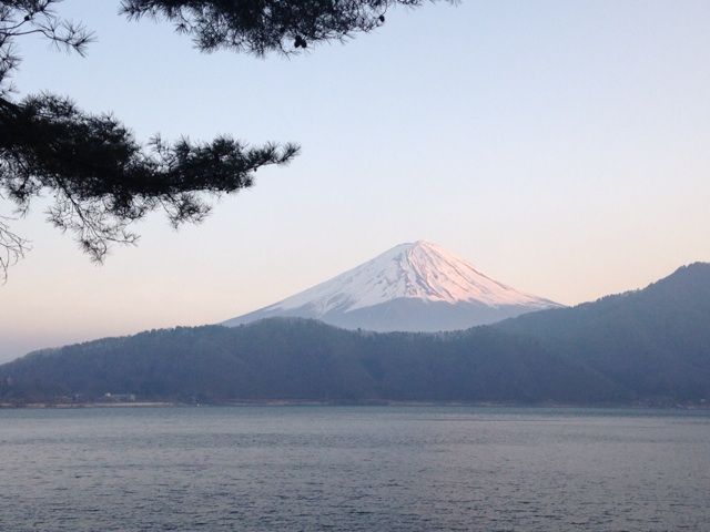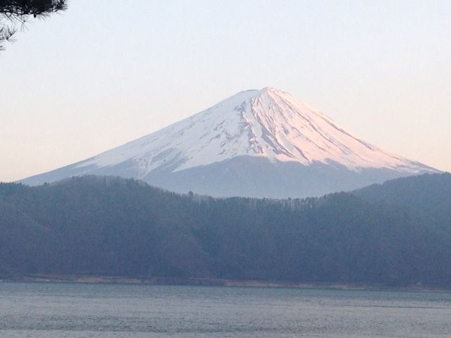 富士山には夕日が差し込んできていて、薄いピンク色の紅富士になってきました。