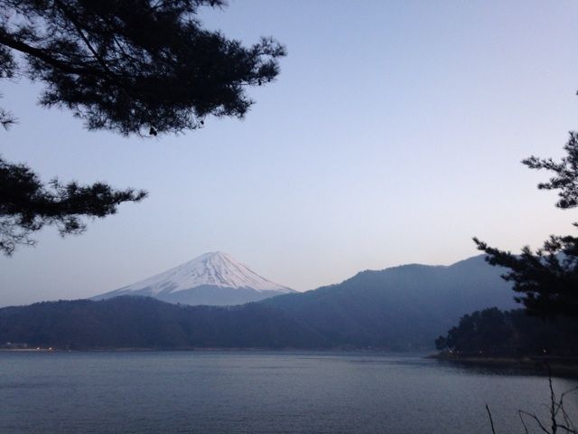 富士山の背景の空にはあまり夕焼けのオレンジ色は出てきませんでした。