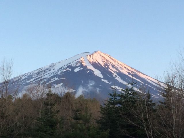 富士山には夕日の残光が差し込んできていて、少しだけピンク色っぽくなってきました。