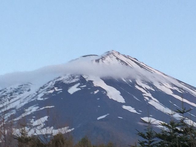富士山には蛇のような帯状の雲が、またかかってきてしまいました。