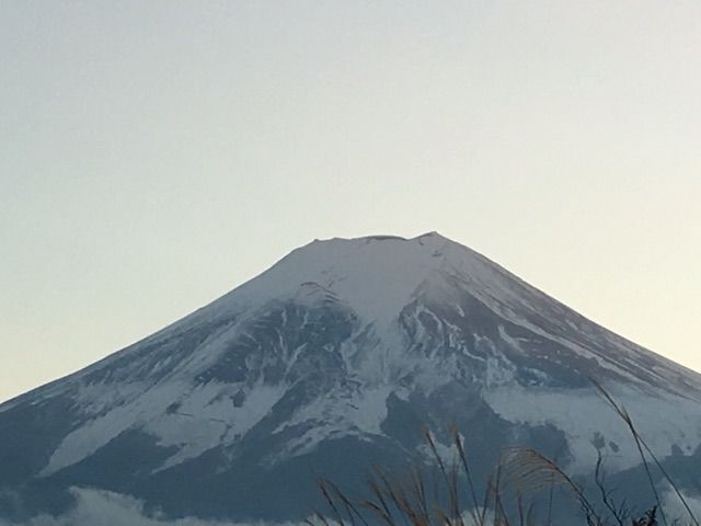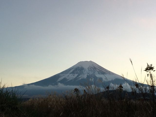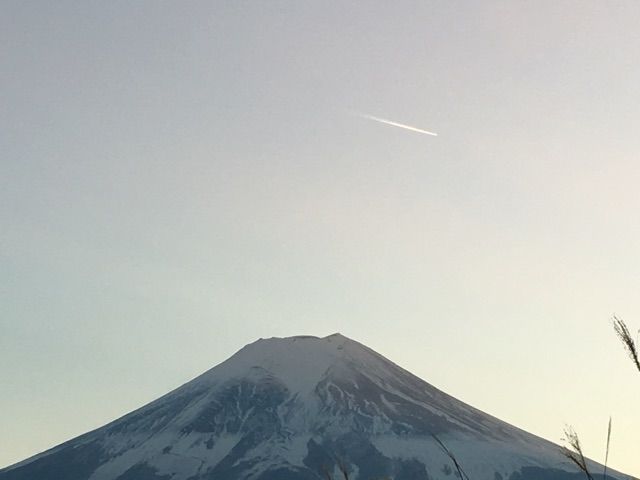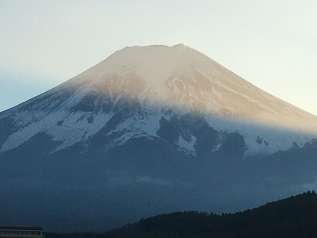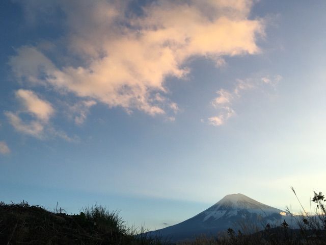 富士山の背景の空には薄いオレンジ色が出てきていました。