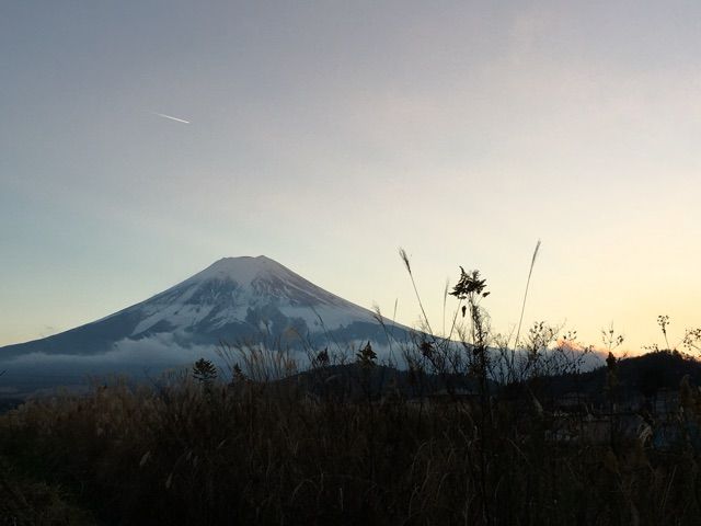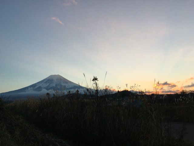 夕日は既に西の山に沈んでしまっていて、富士山には夕日の残光が右下から差し込んできていました。