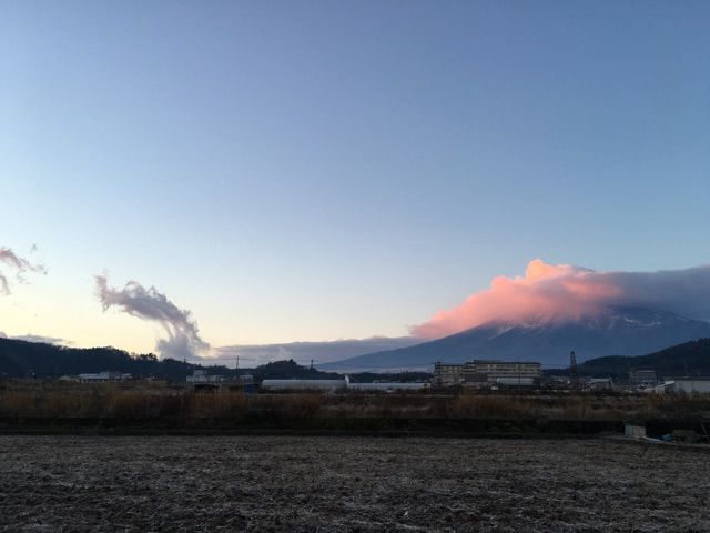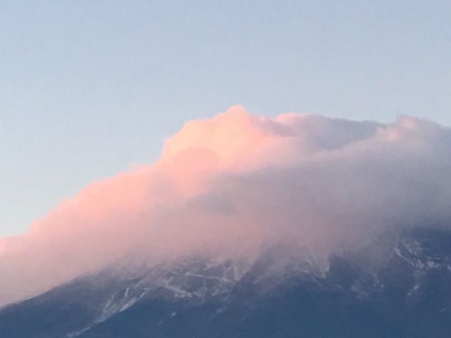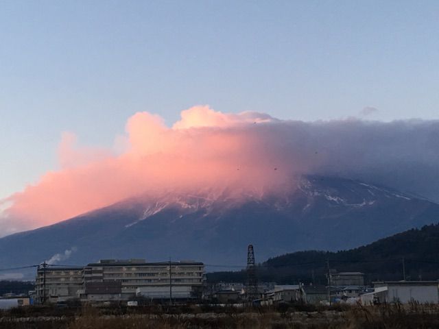 富士山山頂の雲には朝日が当たってきてピンク色になってきました。