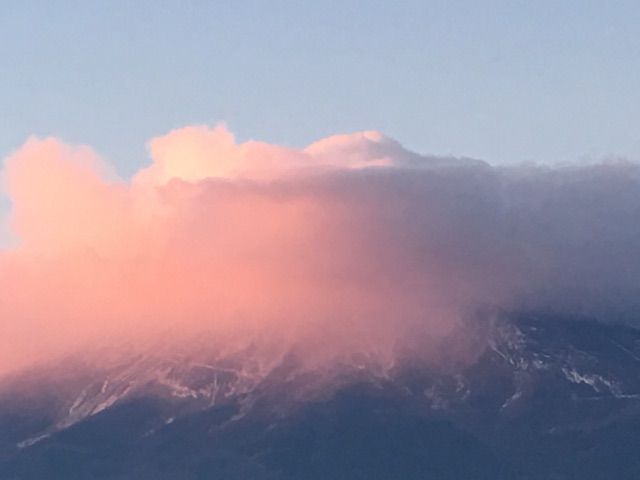 今朝の富士山12・31富士吉田(朝日の当たる雲)