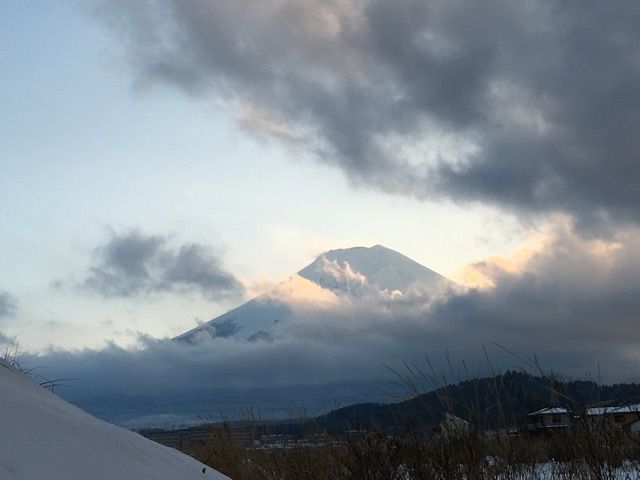 今日の富士山夕暮れ1・31富士吉田市『大明見地区』(西から押し寄せる雲)