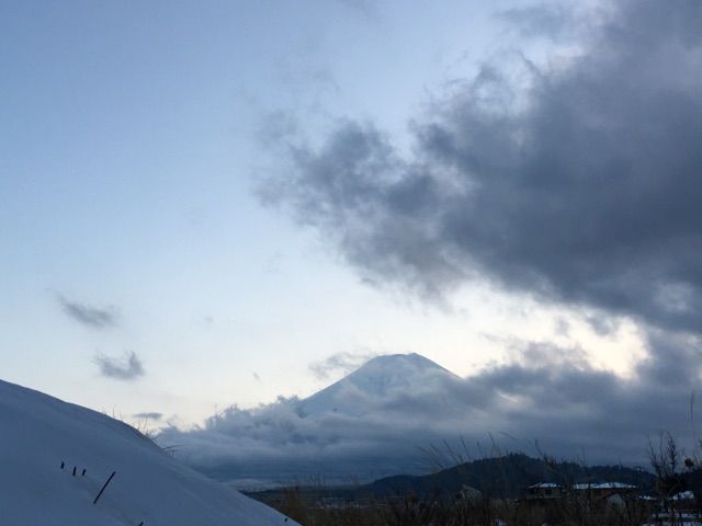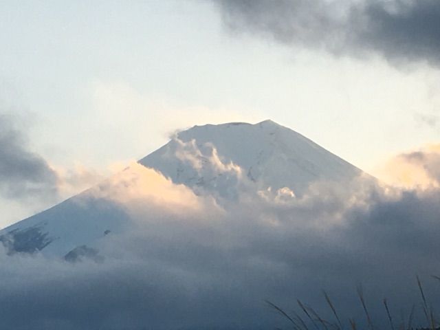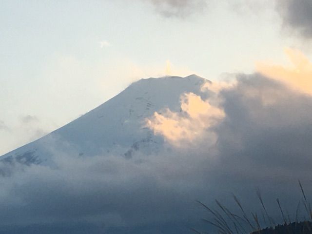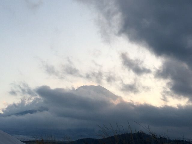 しかし夕方になってからは、少しずつ雲が取れてきて富士山は雲間から見えてきました。