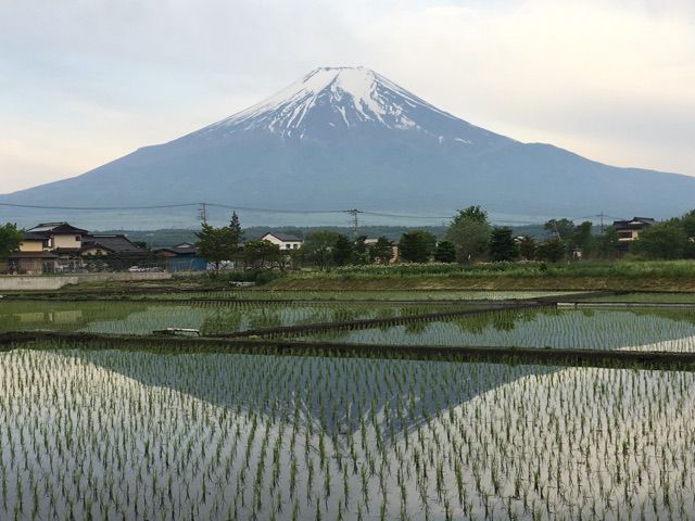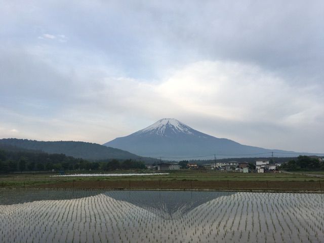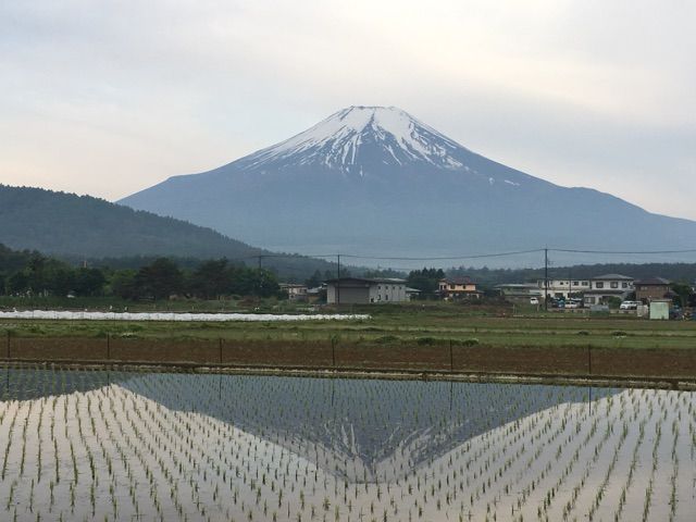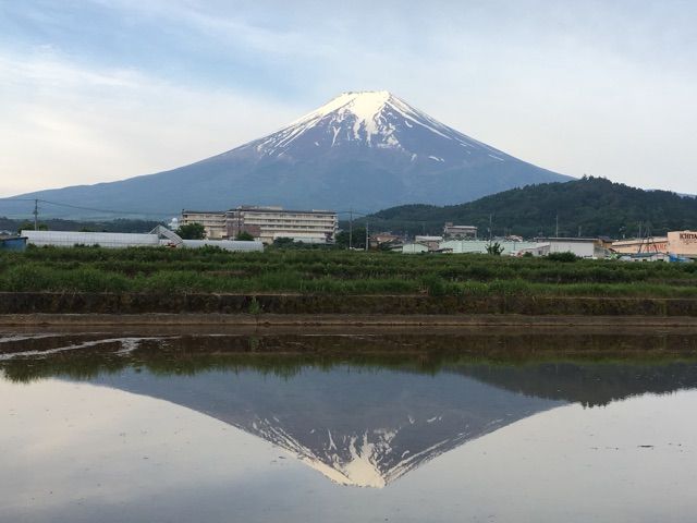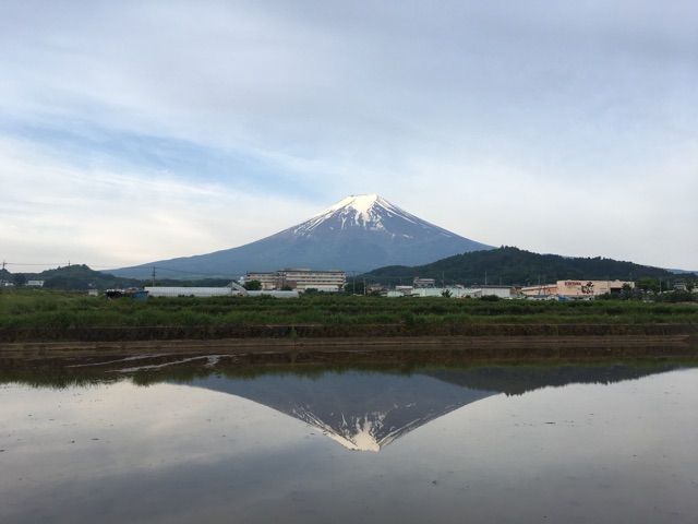 忍野小学校付近の田んぼにも水が入っていて、逆さ富士が見えていました。