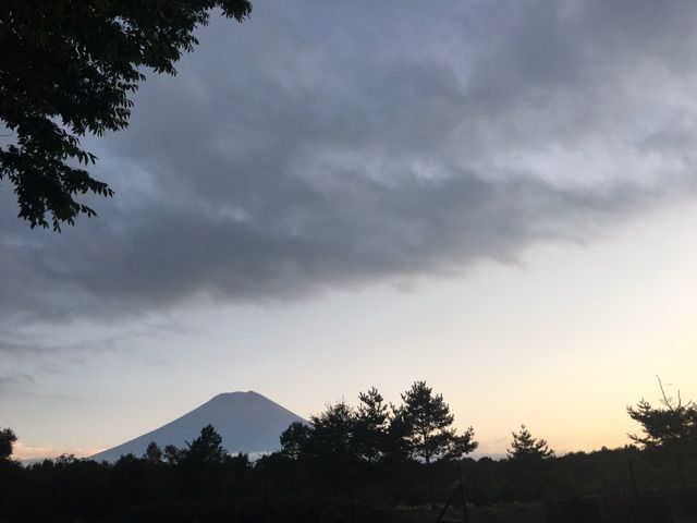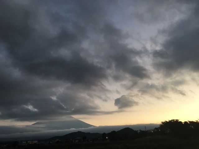 富士山の背景の空の上空には黒い雲が出てきていました。