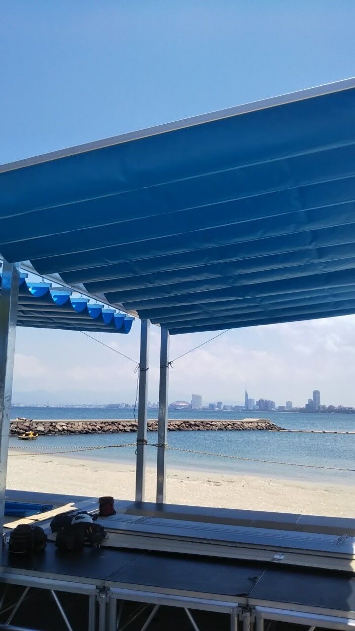 太陽が照り付ける浜辺でソラカゼを持ち上げたり、見上げたりしてました