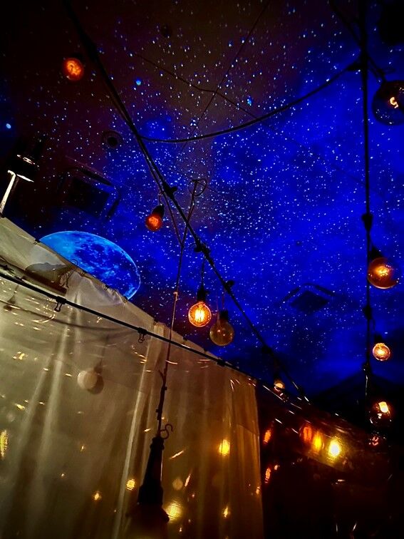 天井にプロジェクションマッピングが映し出されていて、写真だと伝わりづらいのですがプラネタリウムにいる気分になれました〜
