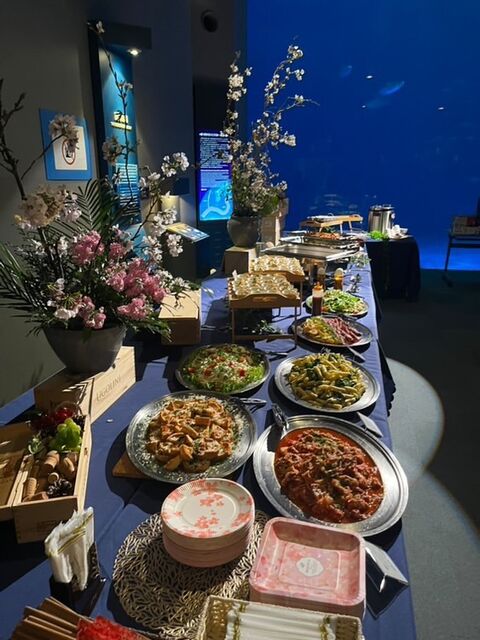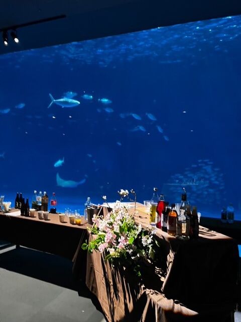 ジンベイザメを見ながらのお食事、図らずもお客さま側で楽しみたいと思ってしまいました笑
