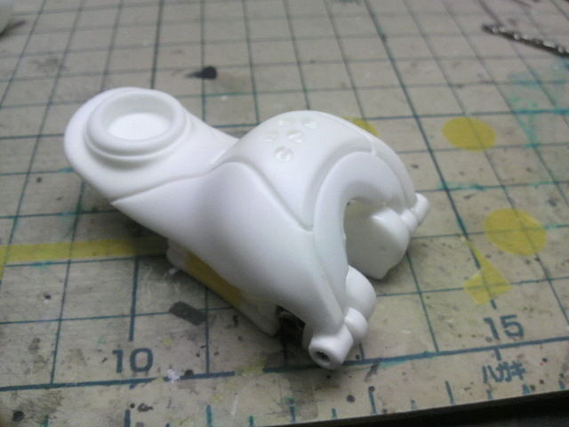 ここにも、変形のための可動部分があります裏側には、胴体を取り付ける為のネオジム磁石が仕込まれます