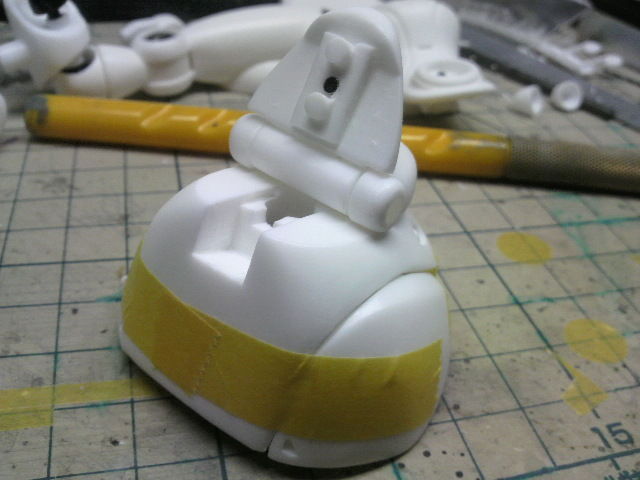 このパーツが頭部の基準になるのですが、首の部分をゲートと間違えて切り取らない様に注意 自分は切り取る寸前に気付きましたよ、危ないなぁ…