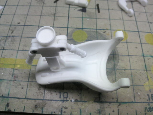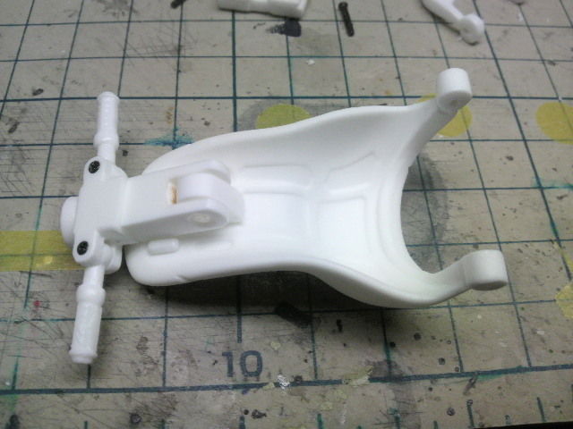 取り付けた胸部外装はこのように折り畳んでおきます、これで胴体部分が出来ました