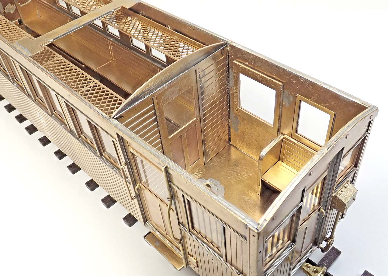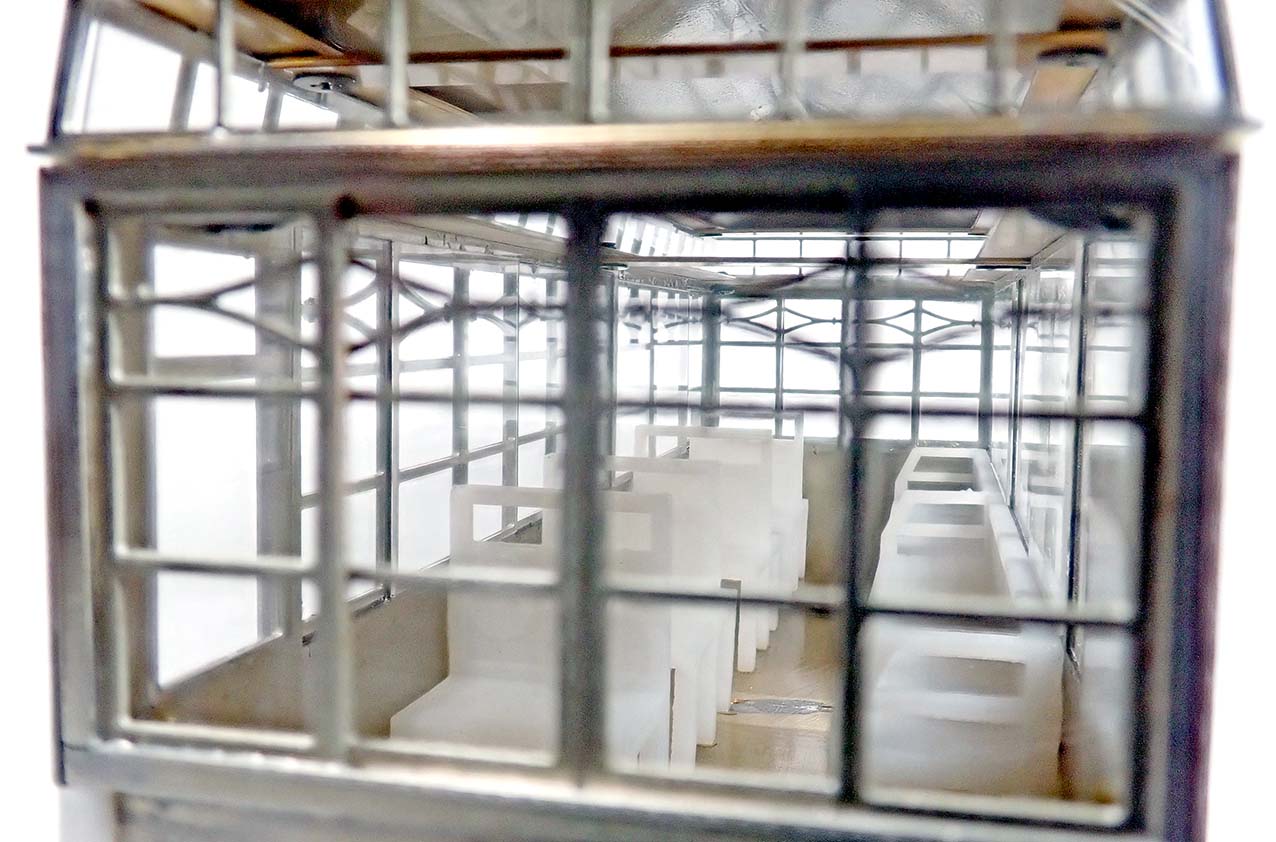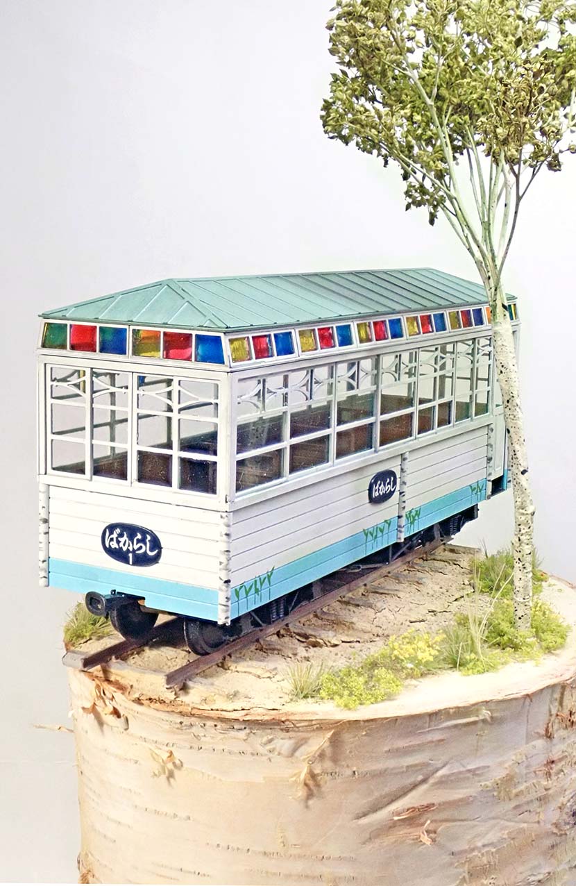 また、車体コーナーの白樺原木の表現、及び室内の椅子(クロスシート・ロングシート)は樹脂パーツが付属しています。