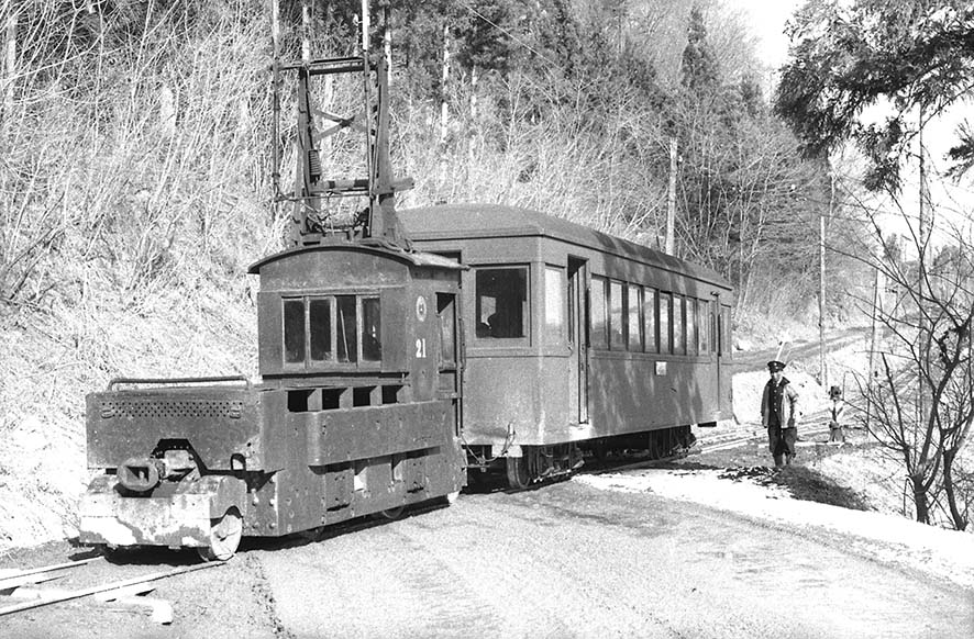 1960 (昭和35) 年 4月の、新軽井沢、上州三原間の部分廃止の際に、デキ22と23は廃車となりましたが(※)、デキ24だけは残存して、上州三原・草津温泉間に束の間の活躍をみせ、その姿は多くのマニアのカメラに記録されています。そして、2両残ったもう1両であるデキ21と共に、廃線後の線路撤去作業の、本当の最後の日まで稼働したデキ12形になりました。