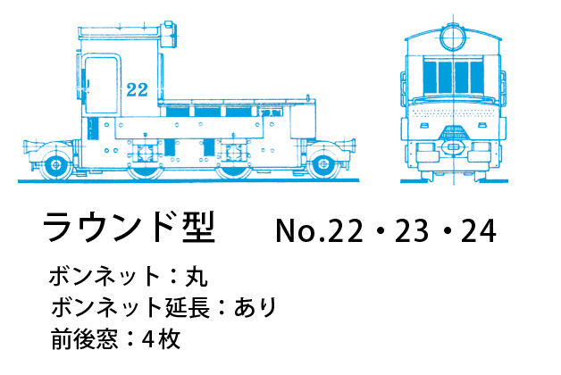正確に言えば、デキ21も最初はこの3両と同じ形状を持っていた。しかし戦時中から戦後早い時期にボンネットがフラットになっている。末期にマニアによって多く記録されたのはこの姿である。