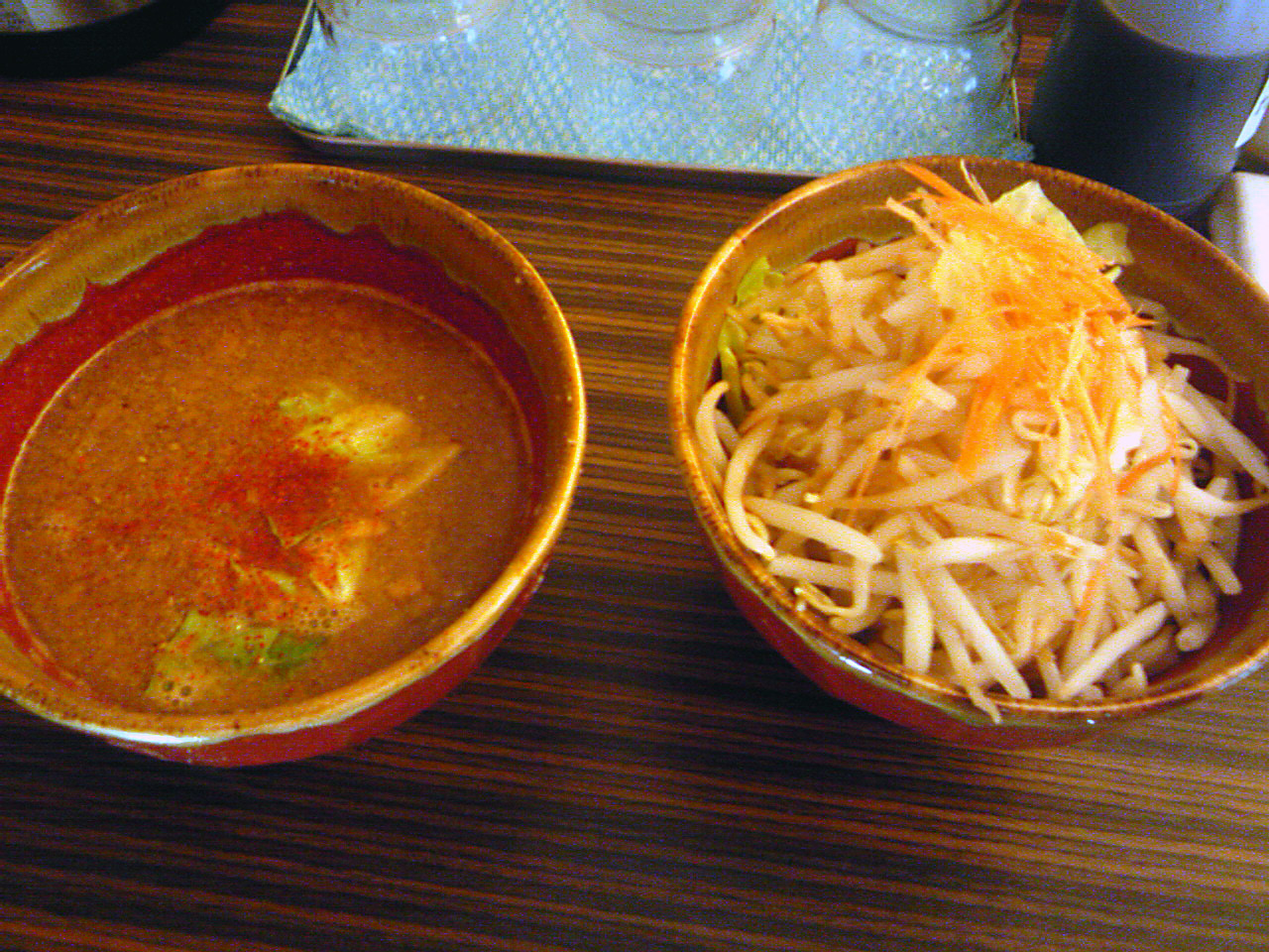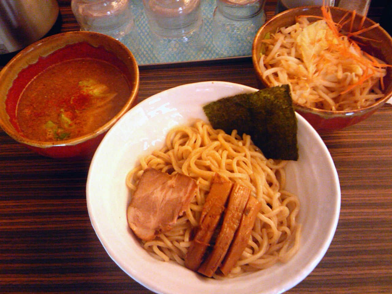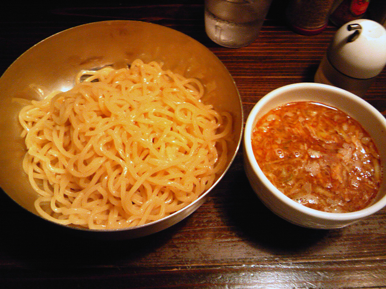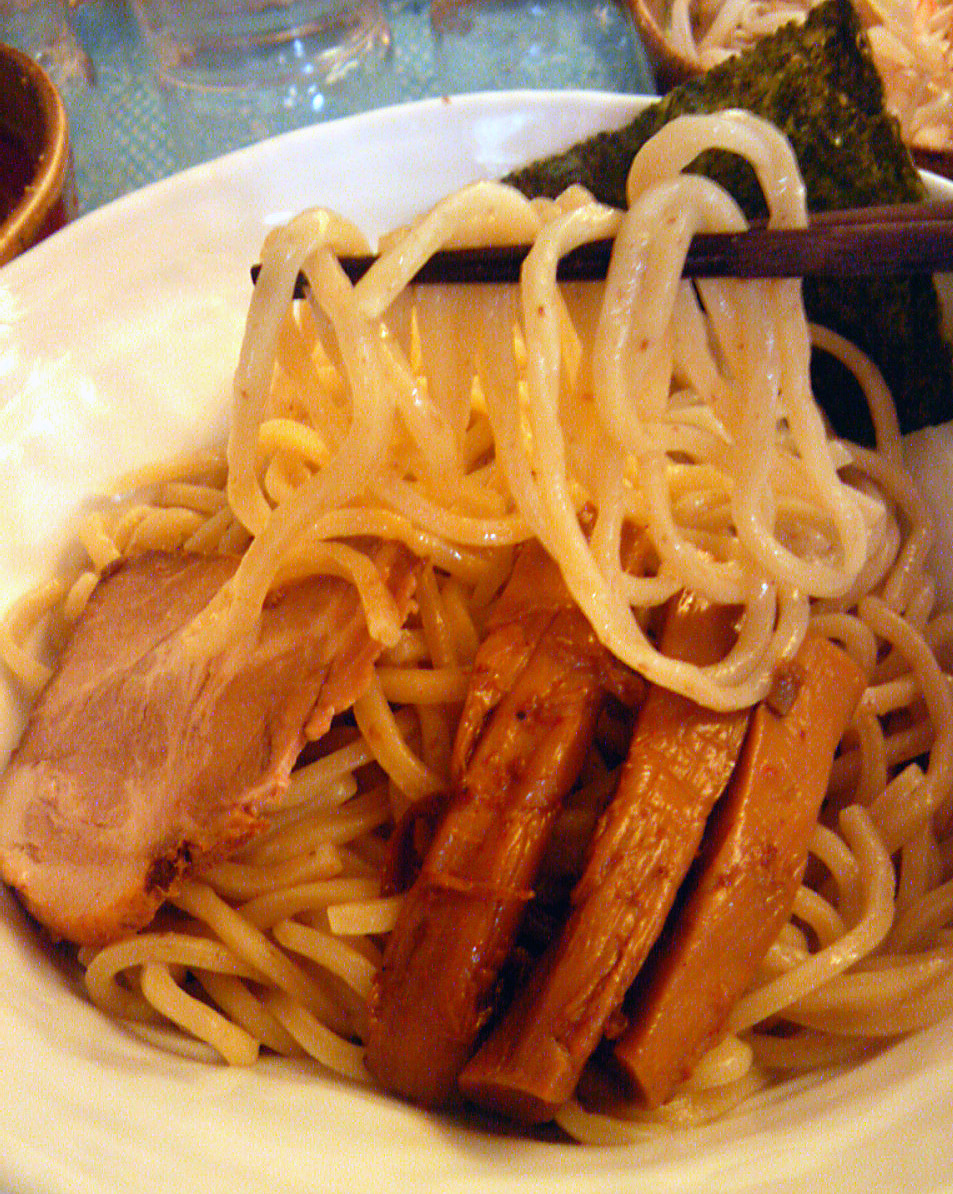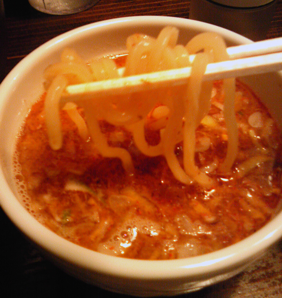 つけ汁が赤い色をしているのでもっと辛いのかと思ったが、実際にはそれ程の辛さではない。