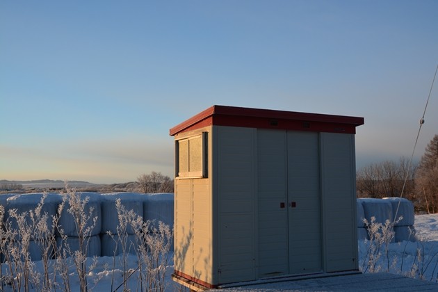 板張りホームでひときわ存在感を示しているヨド物置こそ、糠南駅の待合です。