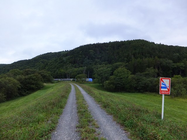 家から続く道を牧草地を横目に進むと堤防に行きつき、さらに進むと線路脇まで行くことができます。