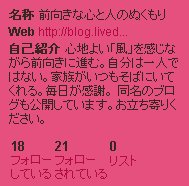 ブログのように、ツイッターでよそさまにお邪魔したこともほとんどない。でも、フォローをしてくれる方が20人を超えた。これは有難い。普通、ツイッターは、フォローされている数より、フォローしている数のほうが多いのだけれど、私がお邪魔していなので、うちのツイッターは、フォローされている数のほうが多い。