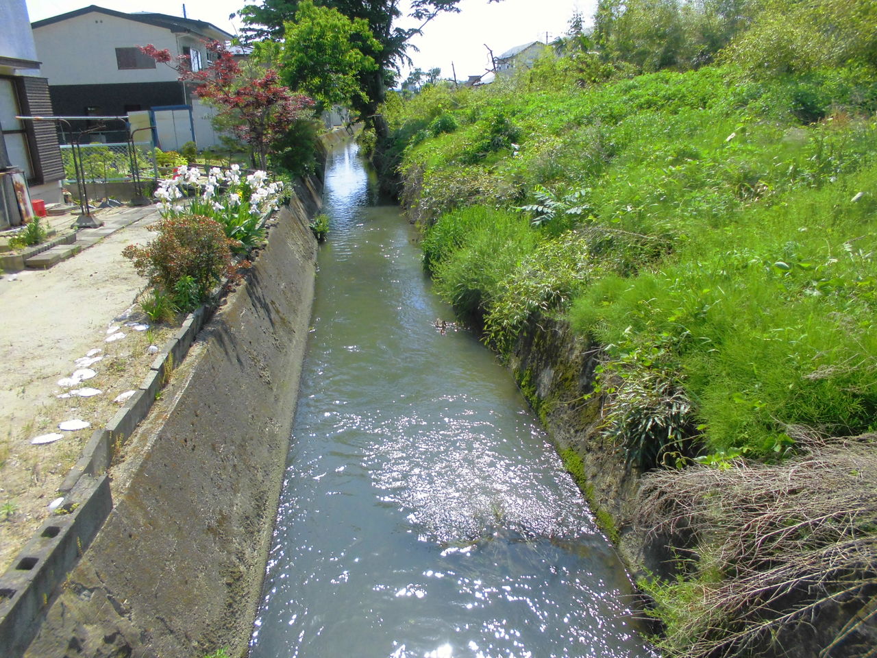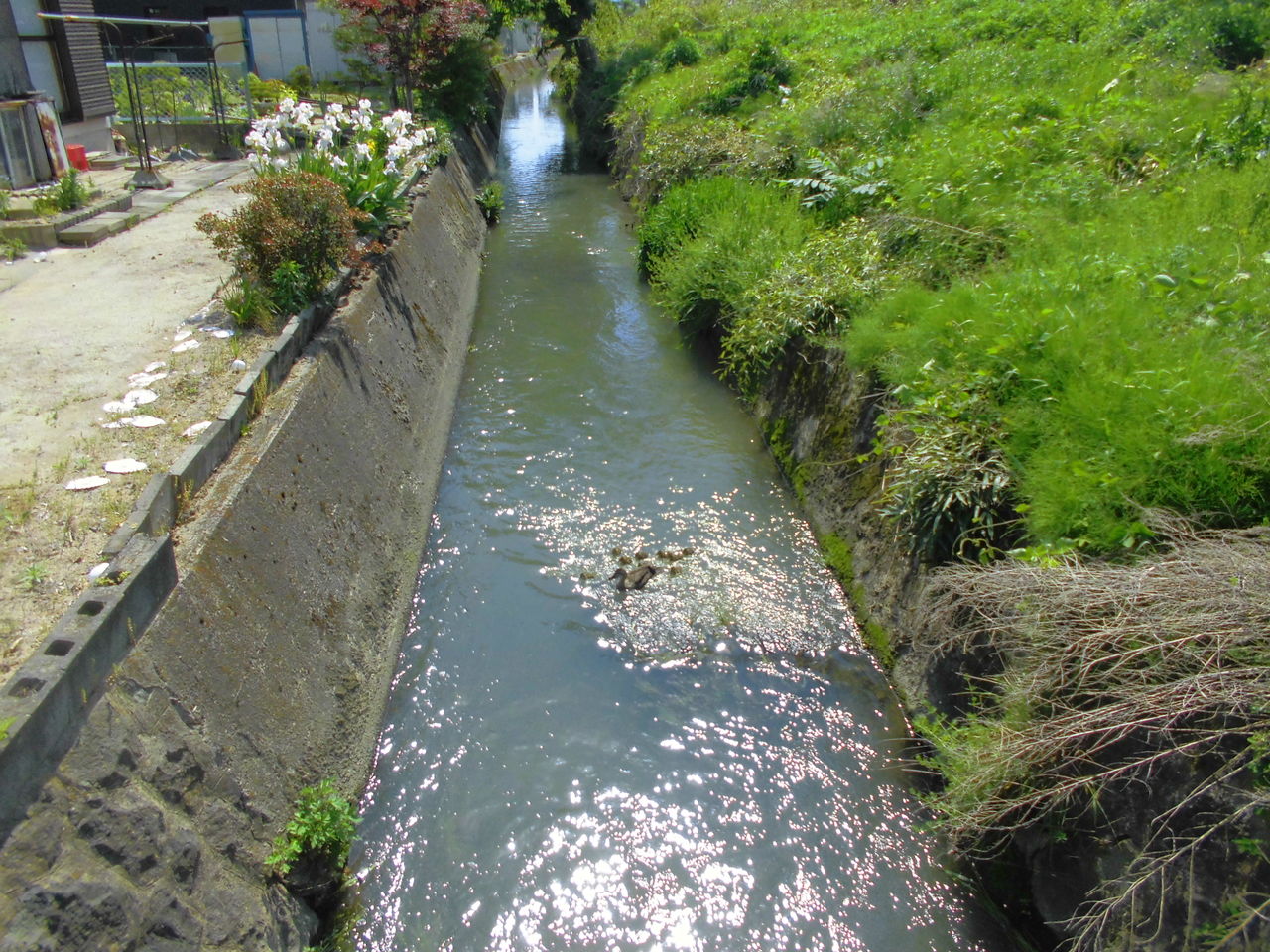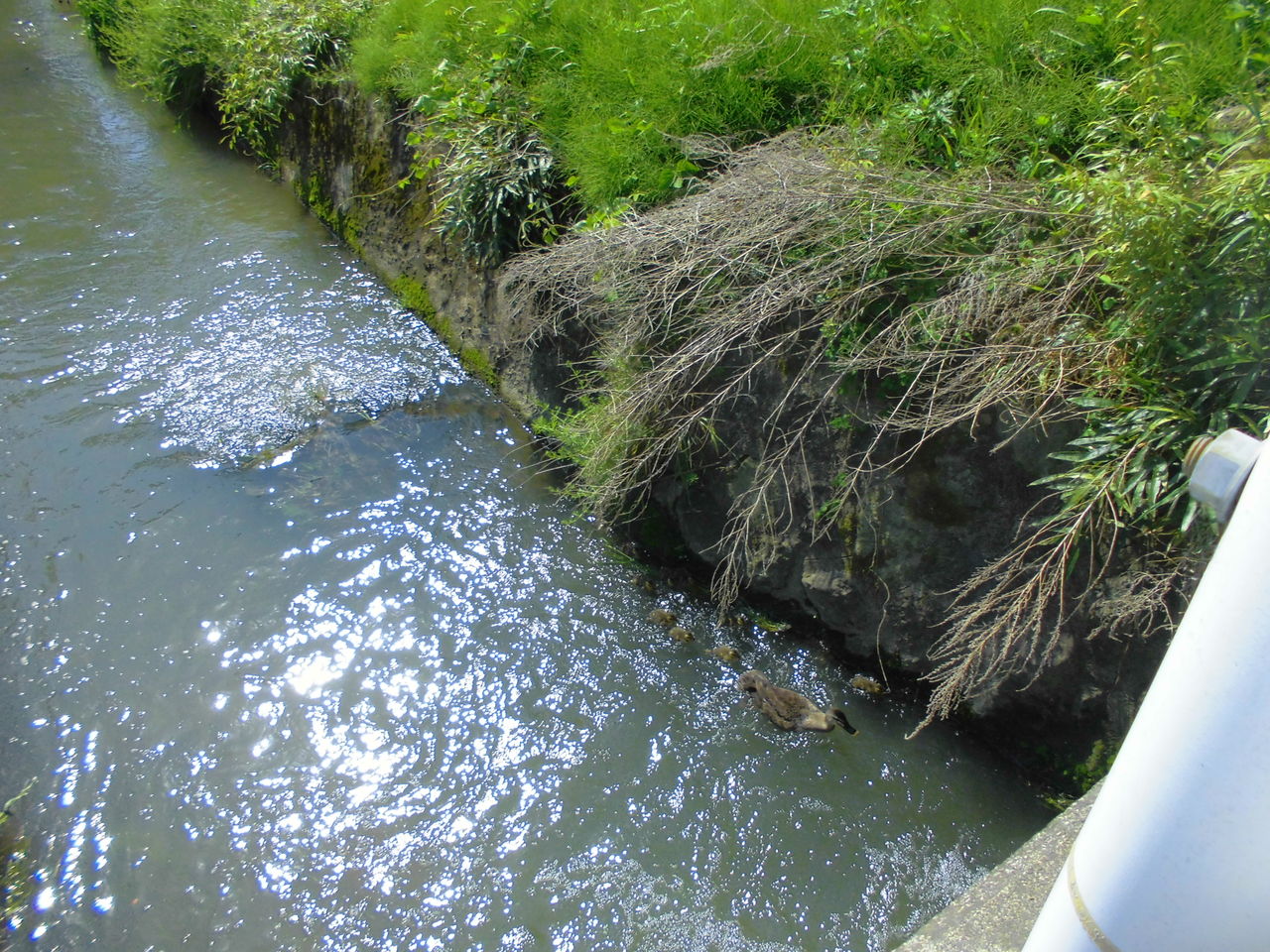 コンクリの護岸の用水 子鴨達
