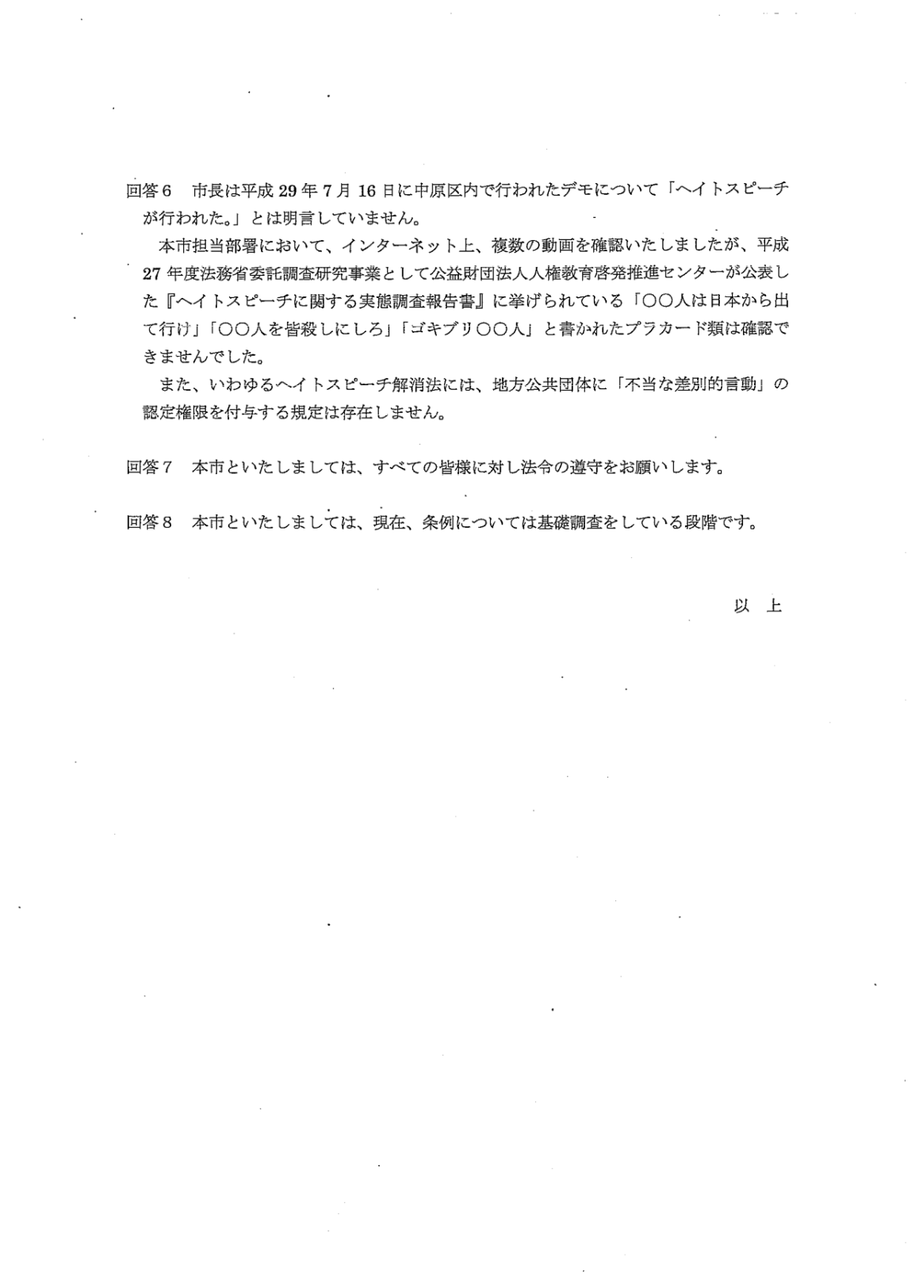 Ê¿À®£²£¹Ç¯£··î£±£¶Æü¤ËÀîºê»Ô¤Ë¤ª¤¤¤Æ¥Ç¥â¤ò¼çºÅ¤·¤¿¤Î¤Ï»ä¤Ç¤¹¤¬¡¢¿ÀÆàÀʹ¤Ê¤É¤Ï¥Ø¥¤¥È¥Ç¥â¤Ê¤É¤È·è¤á¤Ä¤±¤ÆÊ󯻤·¤¿¤¬¡¢Àîºê»ÔĹ¤Ï¤³¤Î²óÅúʸ½ñ¤ÎÃæ¤Ç¡¢¡Ö¥Ø¥¤¥È¥Ç¥â¤¬¹Ô¤ï¤ì¤¿¤È¤ÏÌÀ¸À¤·¤Æ¤¤¤Þ¤»¤ó¡×¤ÈÅú¤¨¤Æ¤¤¤Þ¤¹¡£