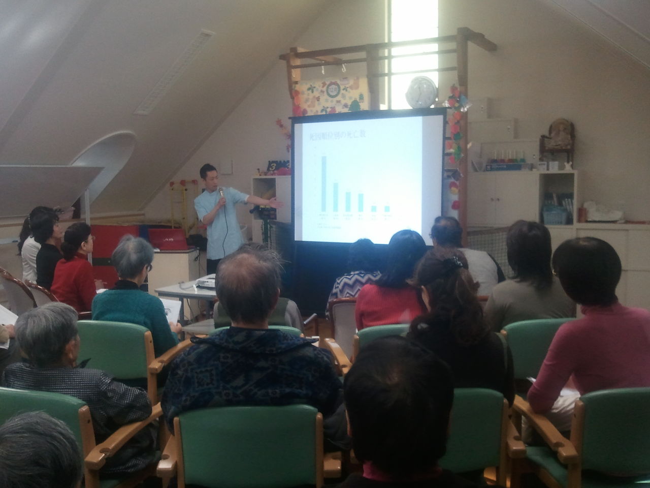 写真は講師の佐藤さん。話の内容に驚かされることばかりでした。