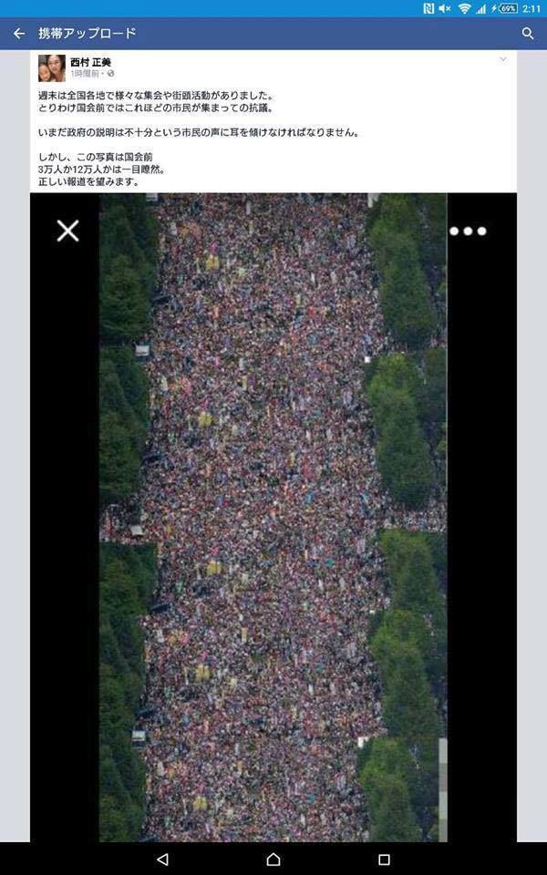 朝日新聞によると「参加者は12万人」とのこと。大きな声を上げて意思表示をするのが目的だと思われる。